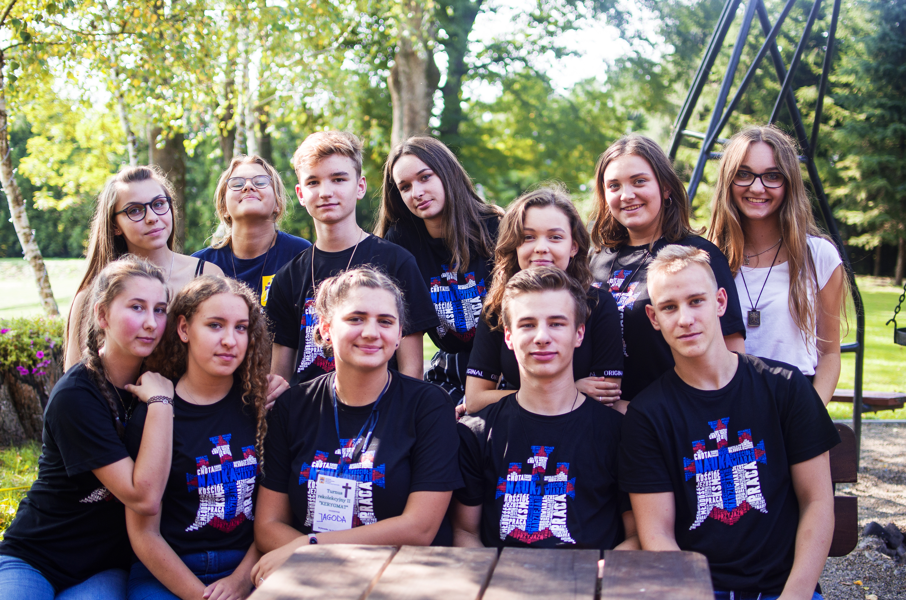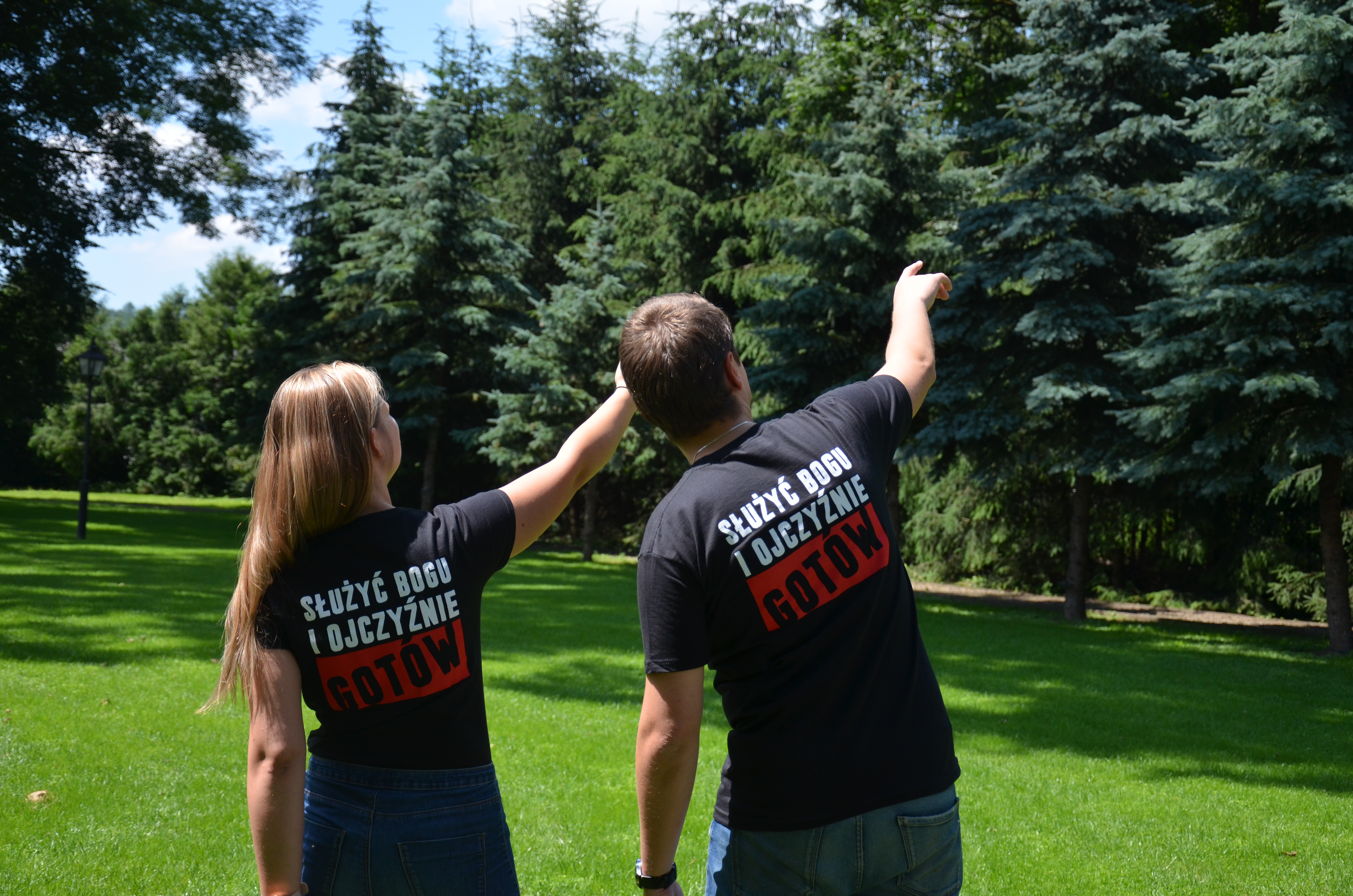 Czarna koszulka z godłem.