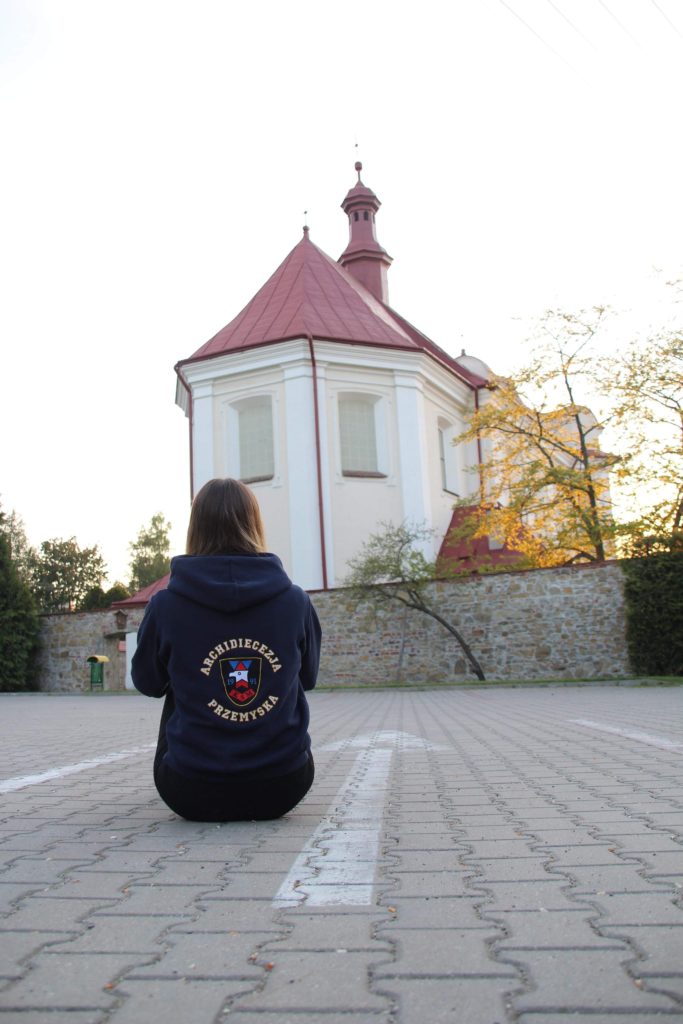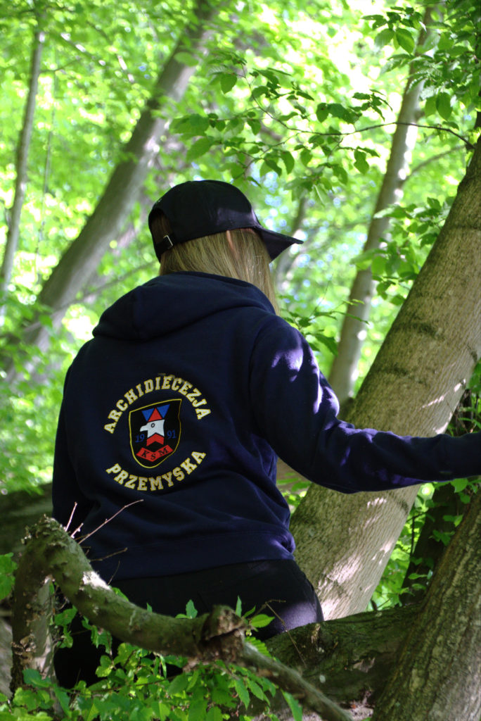 Bluza z kapturem, tył z haftem.