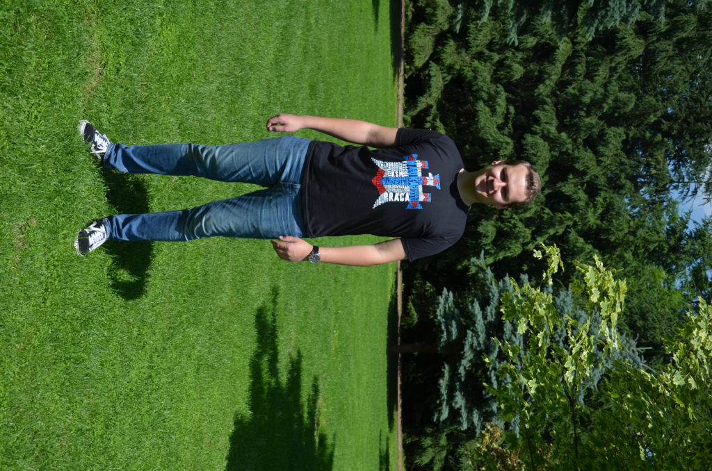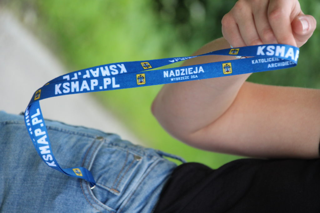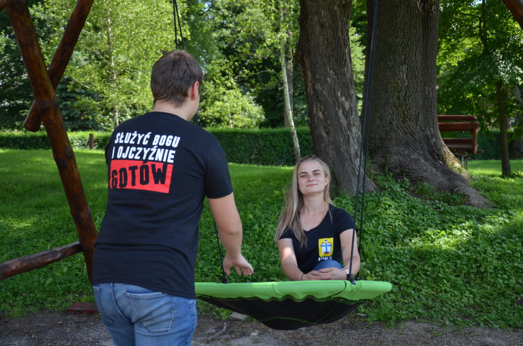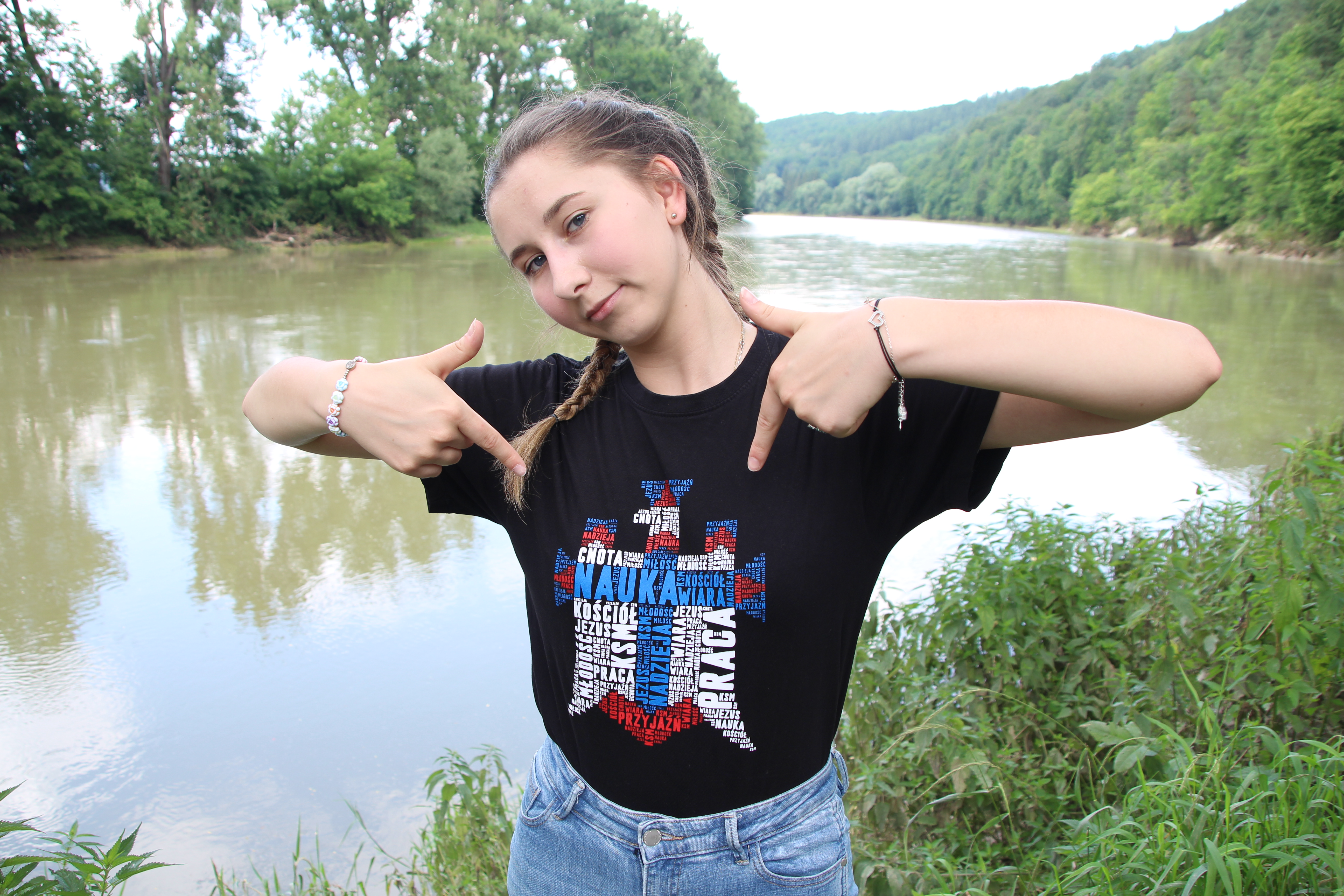 Czarna koszulka z godłem na piersi. Tył koszulki stanowi biało-czerwona flaga z zawołaniem KSM-owskim.